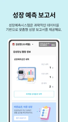신장, 체형, 성장 곡선 등을 고려한 개인별 성장 예측 결과 제공